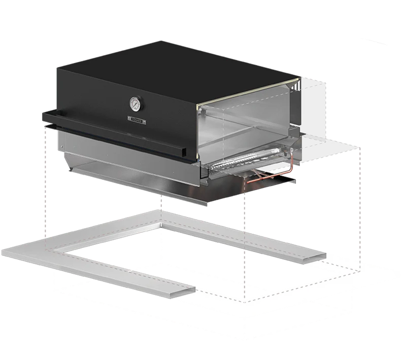 Ons onderzoek naar materialen en luchtstroombeheer heeft geleid tot de ontwikkeling van een product dat dezelfde prestaties levert als een traditionele barbecue, maar geïntegreerd binnen jouw gepersonaliseerde keuken. Integreerbaar op MDI-, metalen en MFC-oppervlakken.