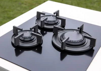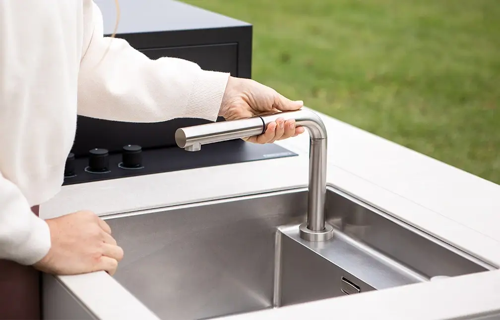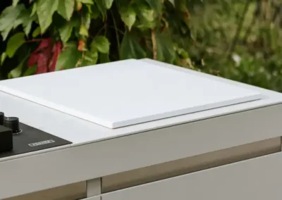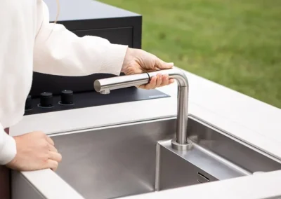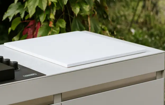 Nojara presenteert twee verfijnde kookoplossingen. De royale en multifunctionele L-versie, uitgerust met de Barbecue FGB 750 of FGB 750 FO, biedt twee configureerbare zones met opties zoals een spoelbak, snijplank en de keuze tussen inductie- of gaskookplaten. Daarnaast is er de essentiële maar elegante S-versie, volledig toegewijd aan de barbecue.